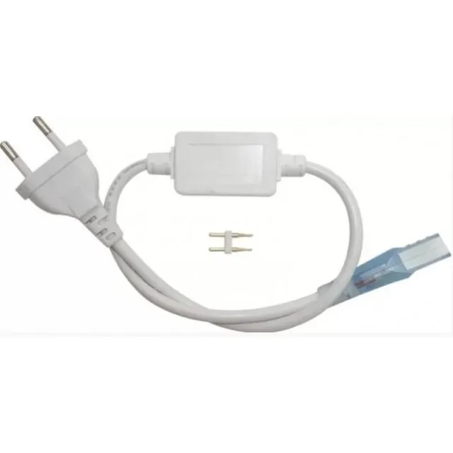 KIT ALIMENTARE TUB LED NEON FLEX 220V contine mufa de alimentare si un conector cu 2 pini la ambele capete. La cerere, va livram produsele deja conectate, ramanand doar sa introduceti stecherul in priza 220V. Pret per bucata.